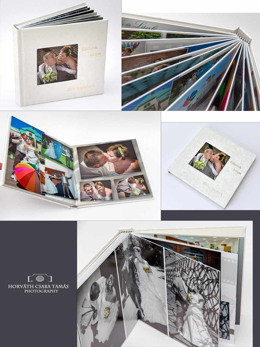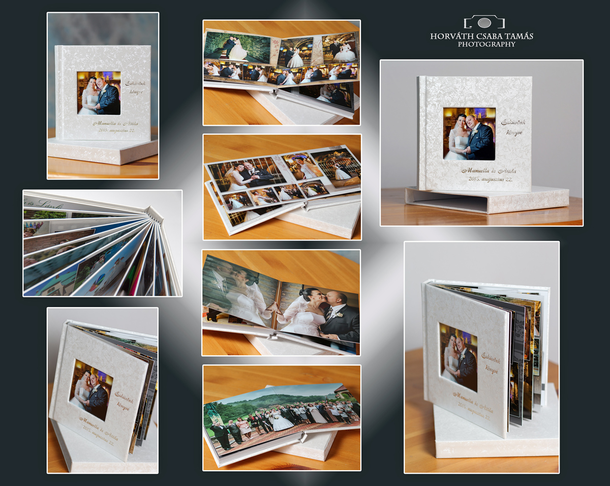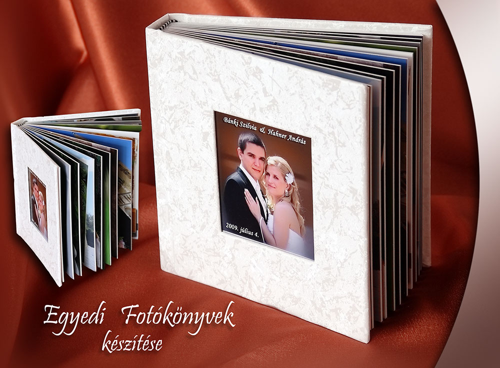 Teljesen egyedi készítésű, igényes kialakítású, keménykötéses esküvői könyv, kitűnő, minőségi fotópapírra készítve, ami csak rólatok szól. Megörökítve életetek egyik legfontosabb eseményét, egy különleges albumba sűrítve.