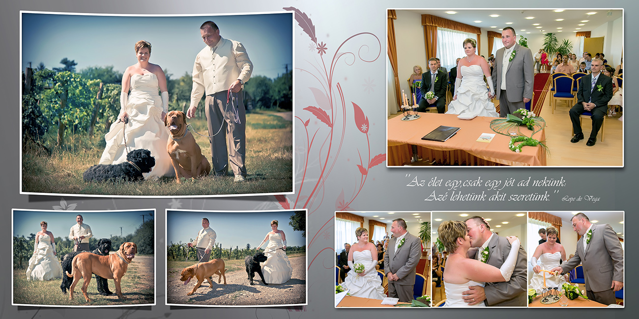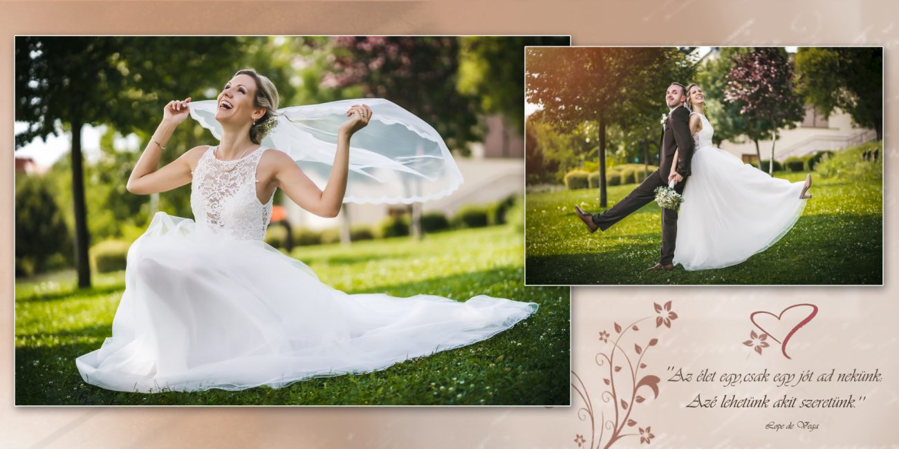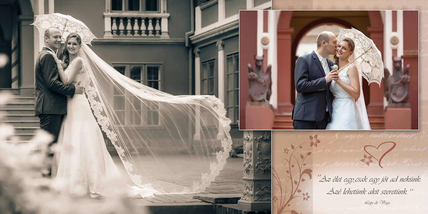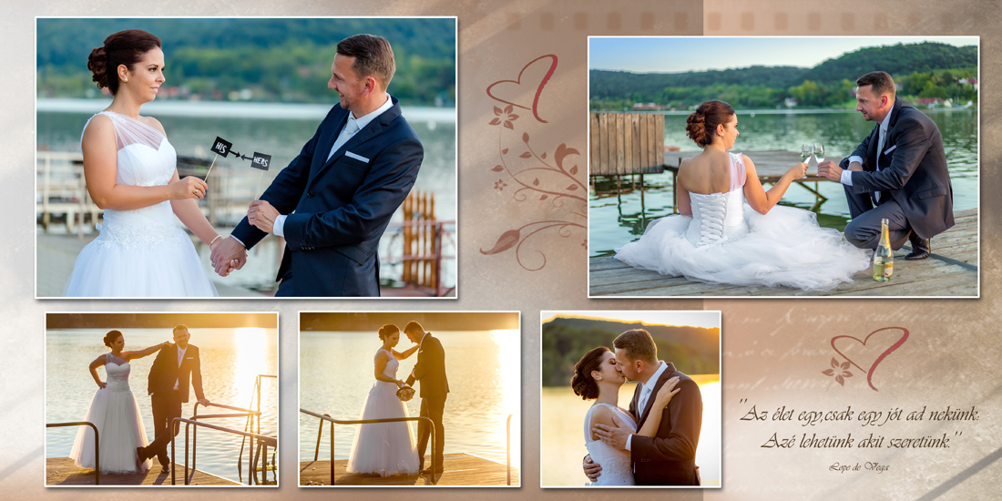 Teljesen egyedi készítésű, igényes kialakítású, keménykötéses esküvői könyv, kitűnő, minőségi fotópapírra készítve, ami csak rólatok szól. Megörökítve életetek egyik legfontosabb eseményét, egy különleges albumba sűrítve.